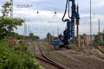Auch im Bereich zwischen Gbf und Pbf stehen einige neue Masten. Auf Höhe der Kurve wurde ein Weichenmontageplatz eingerichtet, wo gerade die neue Weiche 2709 (vmtl. nördliche Gbf-Ausfahrt) montiert wird.